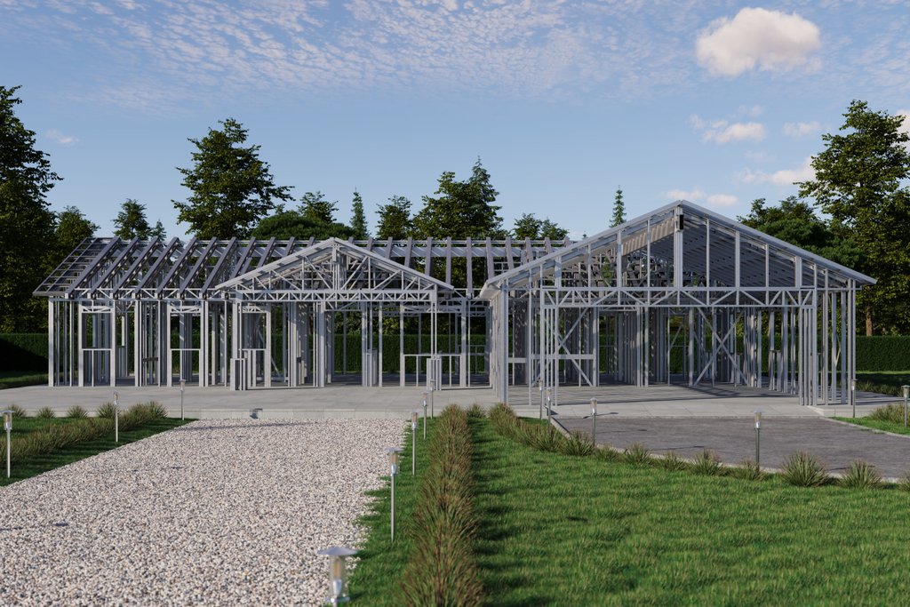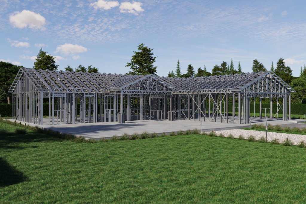 Designed for use as a PEMB (Pre-Engineered Metal Building) using Z8 metal framing with insulated panels on the exterior and 2x4" studs for the interior.