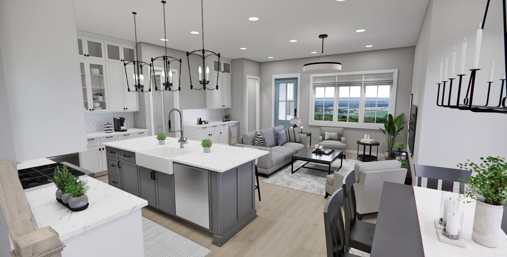 Welcome to this charming 2225 sq ft bungalow, where modern amenities meet classic design, creating a perfect blend of comfort and style. As you approach the home, the charming exterior invites you inside, where you'll find a spacious and functional layout. The large kitchen is a chef's dream, featuring a walk-in pantry, multiple cabinets, and an island with seating for four, providing ample space for meal preparation and casual dining. The inviting great room is the heart of the home, with sliding door access to the rear porch, allowing for seamless indoor-outdoor living and entertaining. The main level master suite offers a private retreat, complete with all the comforts needed for relaxation. A rear corner office provides a quiet space for work or study and has the flexibility to be converted into a fourth bedroom if desired. Both the front and rear porches are covered, offering delightful spots to enjoy the outdoors. Upstairs, the roomy loft provides additional living space, perfect for a secondary lounge or play area. The upper level also includes two bedrooms, each with its own closet and full bath, ensuring comfort and privacy for family members or guests. This bungalow is designed to meet the needs of modern living while retaining its charming appeal, making it the perfect home for creating lasting memories.