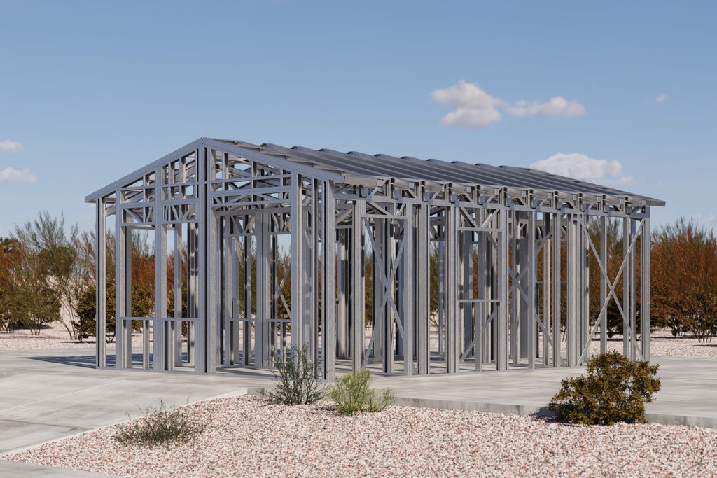 Designed for use as a PEMB (Pre-Engineered Metal Building) using Z8 metal framing with insulated panels on the exterior and 2x4" studs for the interior.