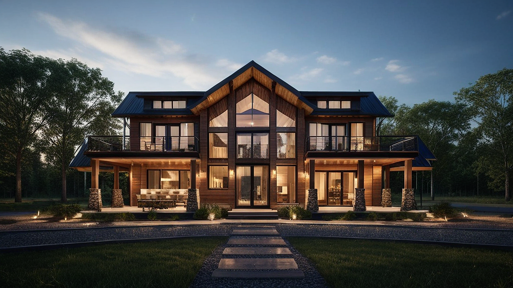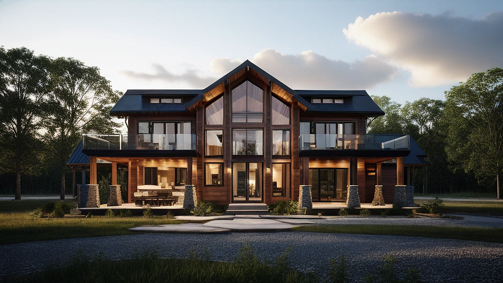 This cabin design floor plan is 3837 sq ft and has 5 bedrooms and 5.5 bathrooms.