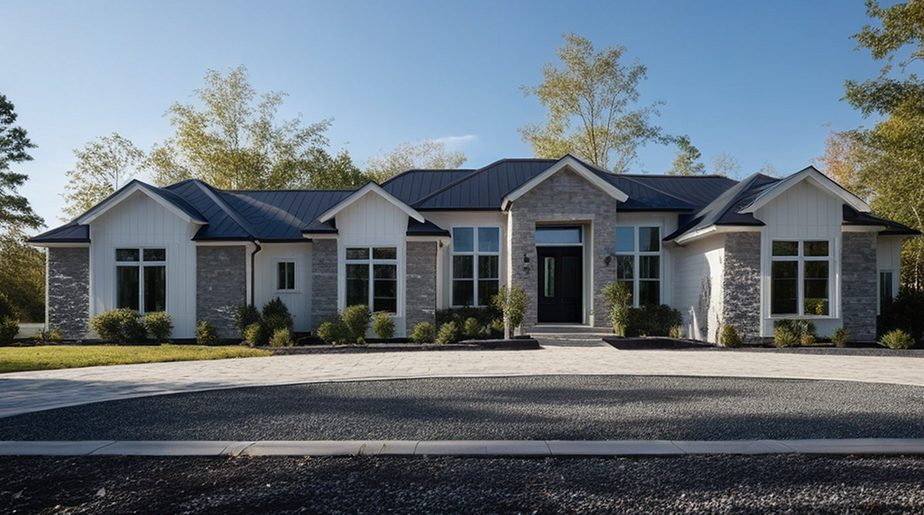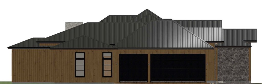 • Exterior Elevations: Elevations are a 2d representation of each side of the house. They typically indicate the materials for the walls, roof, and other elements that are part of the home. Labels for Doors and Windows, as well as key height markers are included.