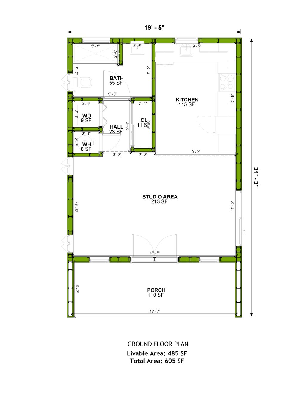 All plans are drawn at ¼” scale or larger and include :