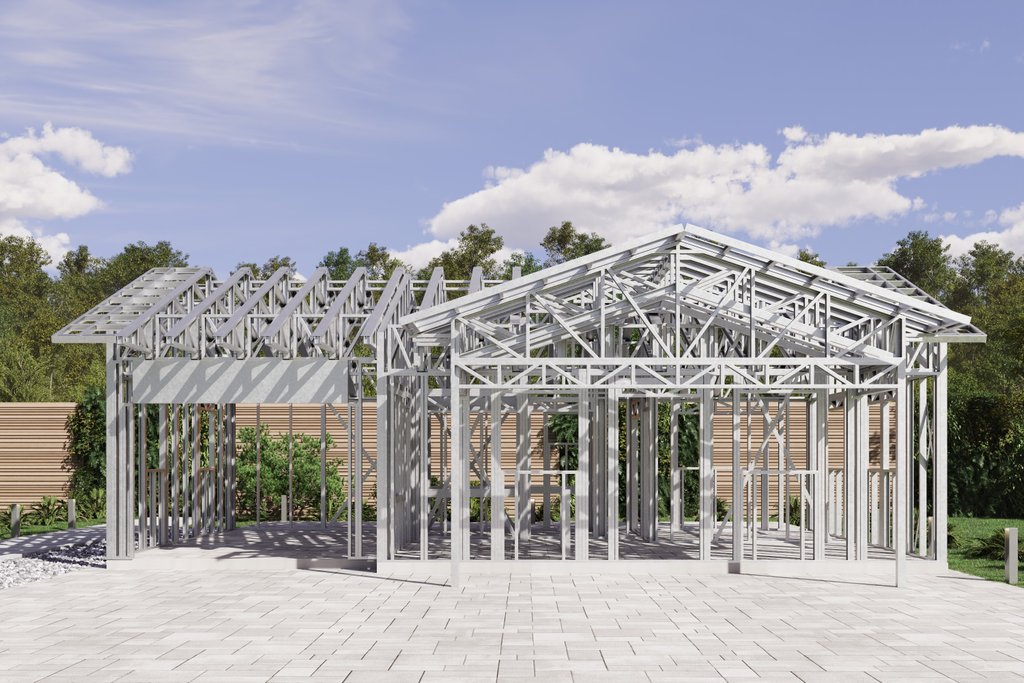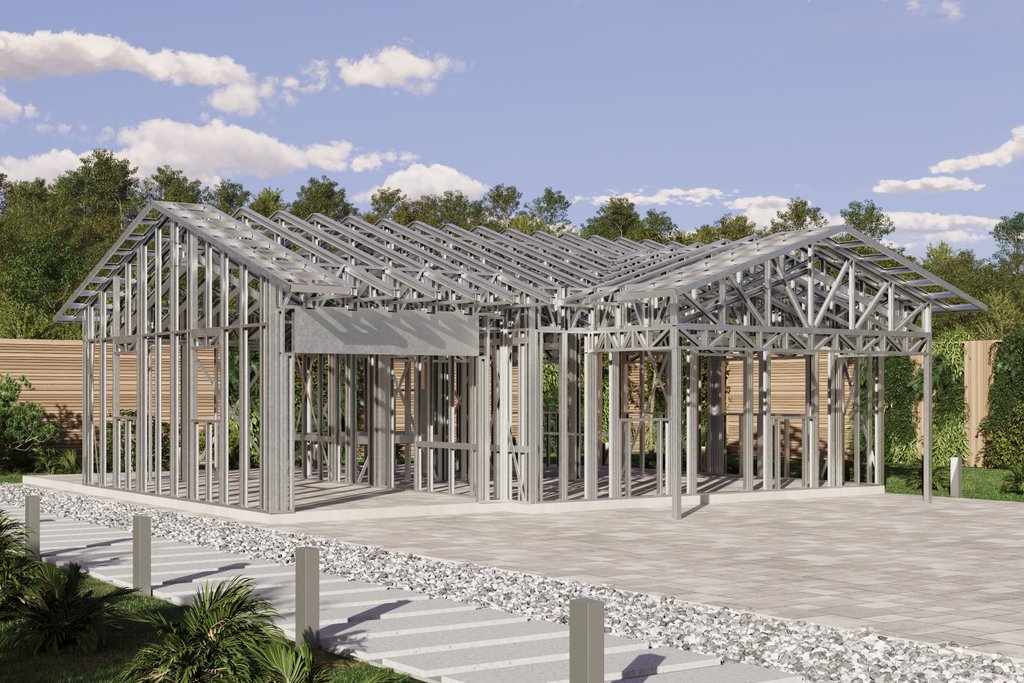 Designed for use as a PEMB (Pre-Engineered Metal Building) using Z8 metal framing with insulated panels on the exterior and 2x4" studs for the interior.