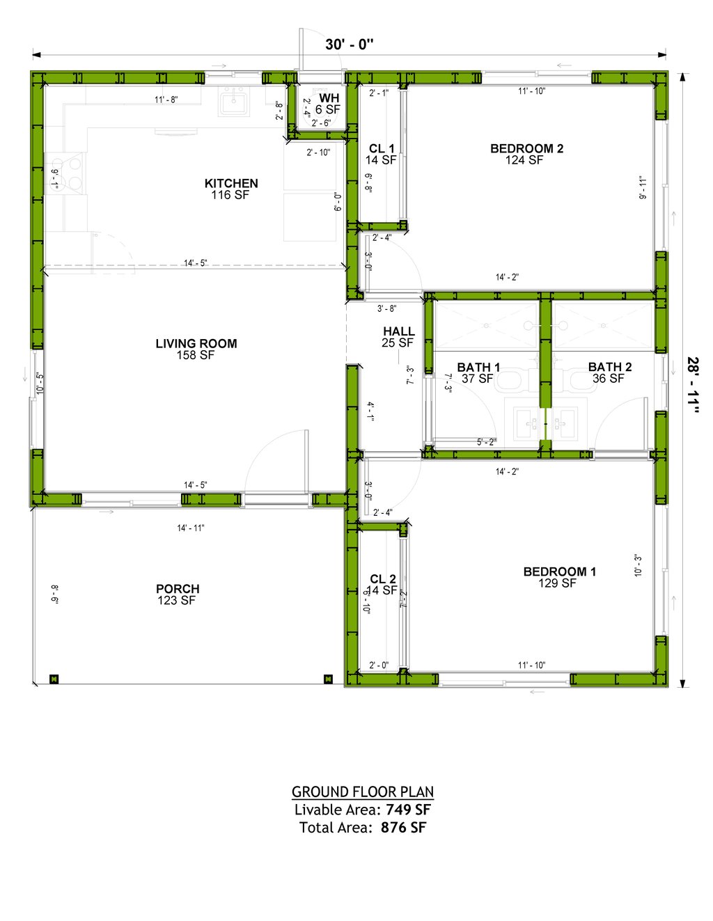 All plans are drawn at ¼” scale or larger and include :