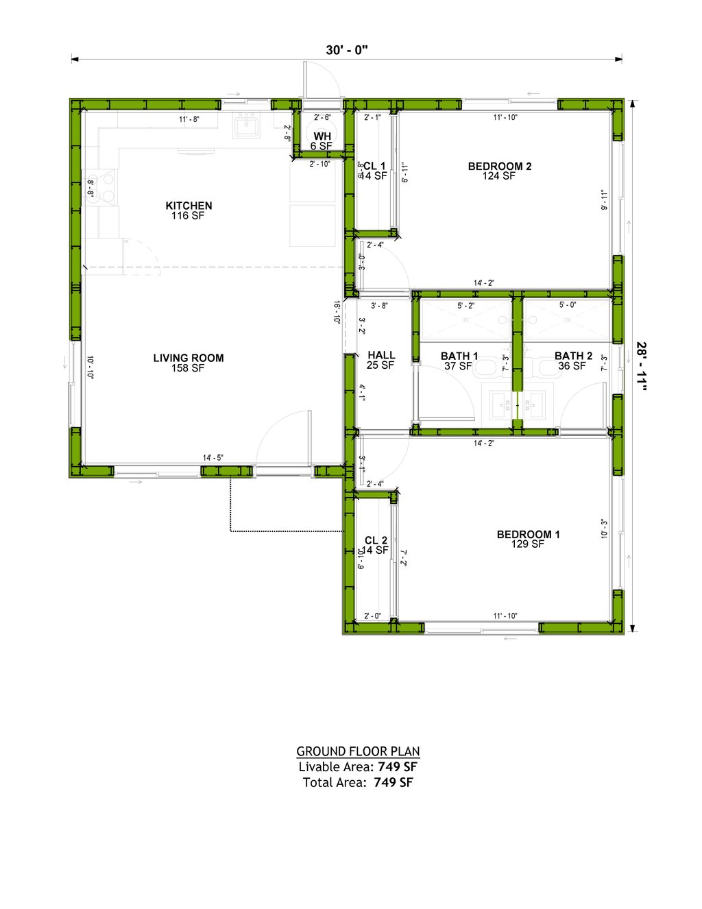 All plans are drawn at ¼” scale or larger and include :
