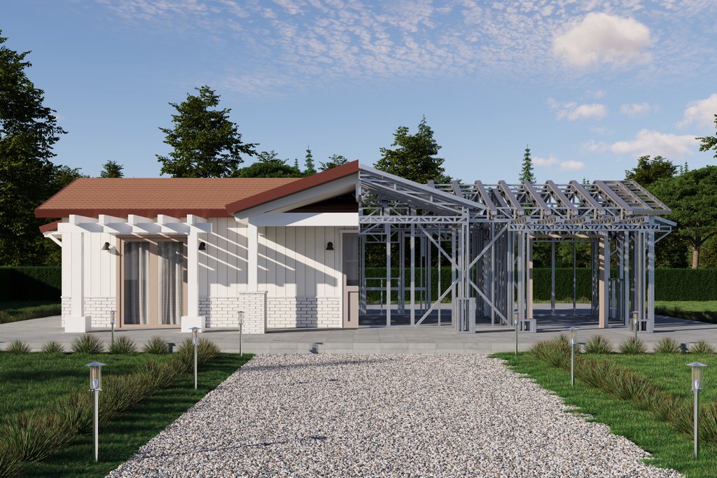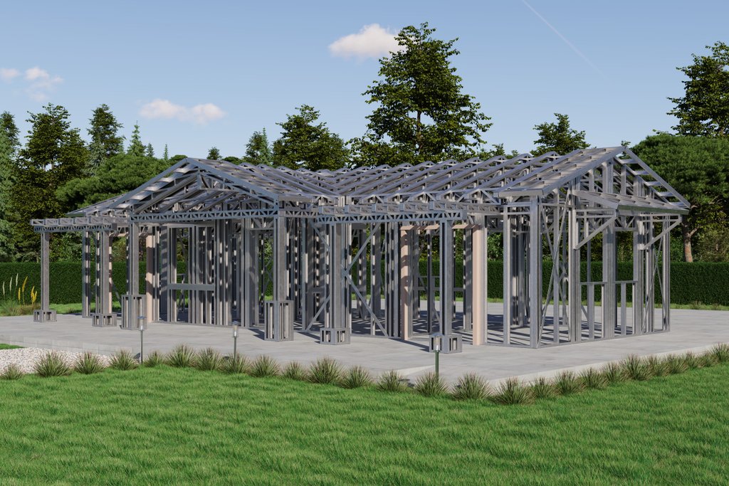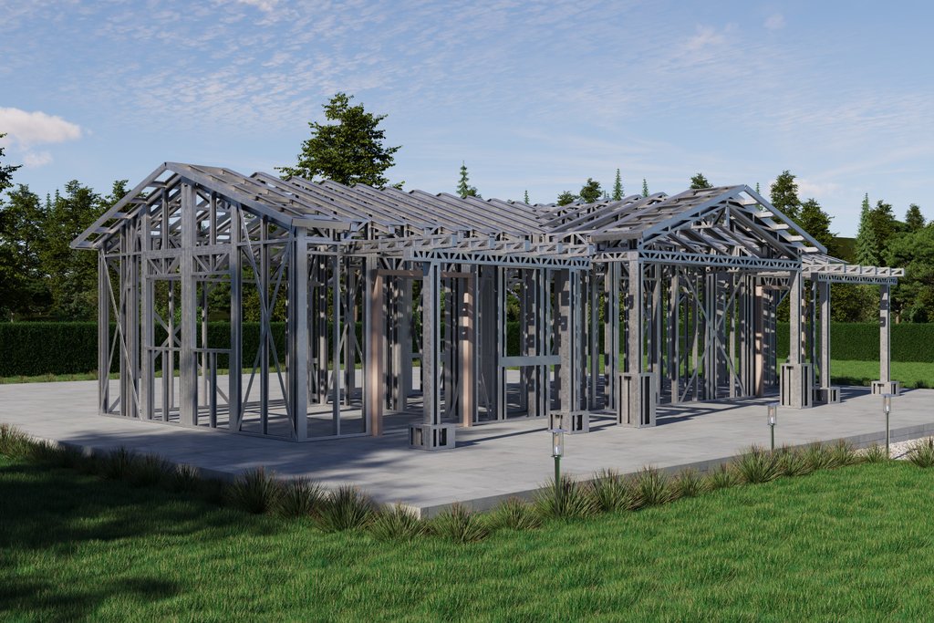 Designed for use as a PEMB (Pre-Engineered Metal Building) using Z8 metal framing with insulated panels on the exterior and 2x4" studs for the interior.