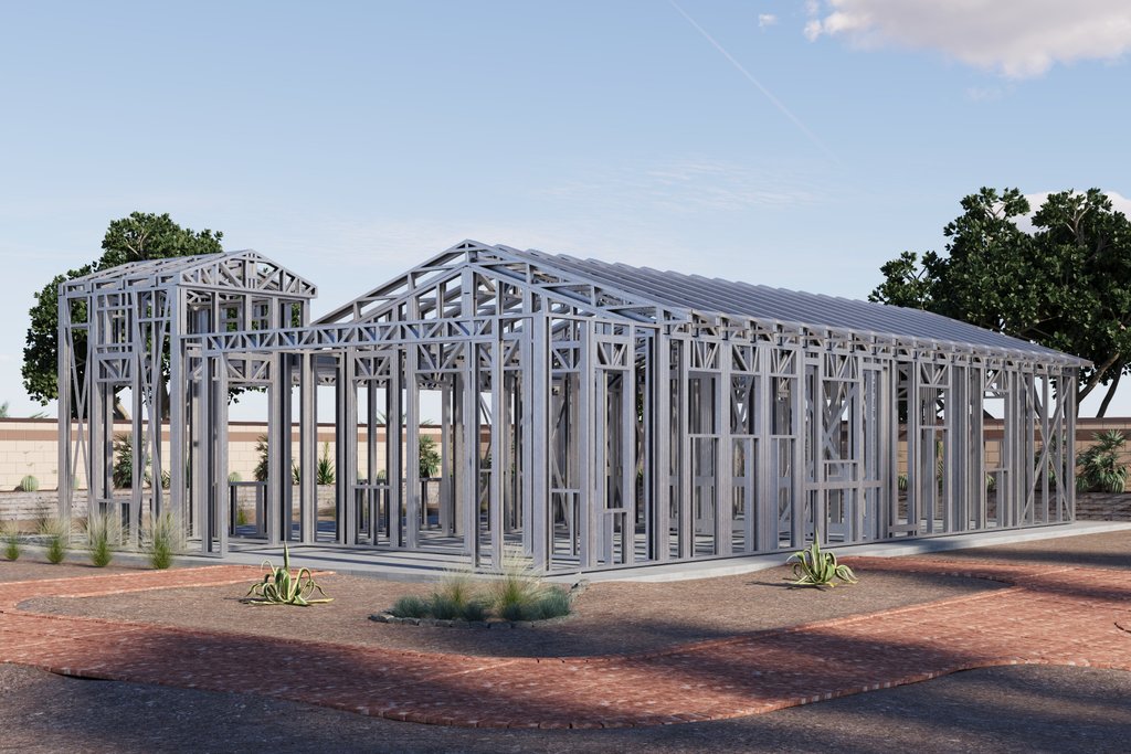 Designed for use as a PEMB (Pre-Engineered Metal Building) using Z8 metal framing with insulated panels on the exterior and 2x4" studs for the interior.