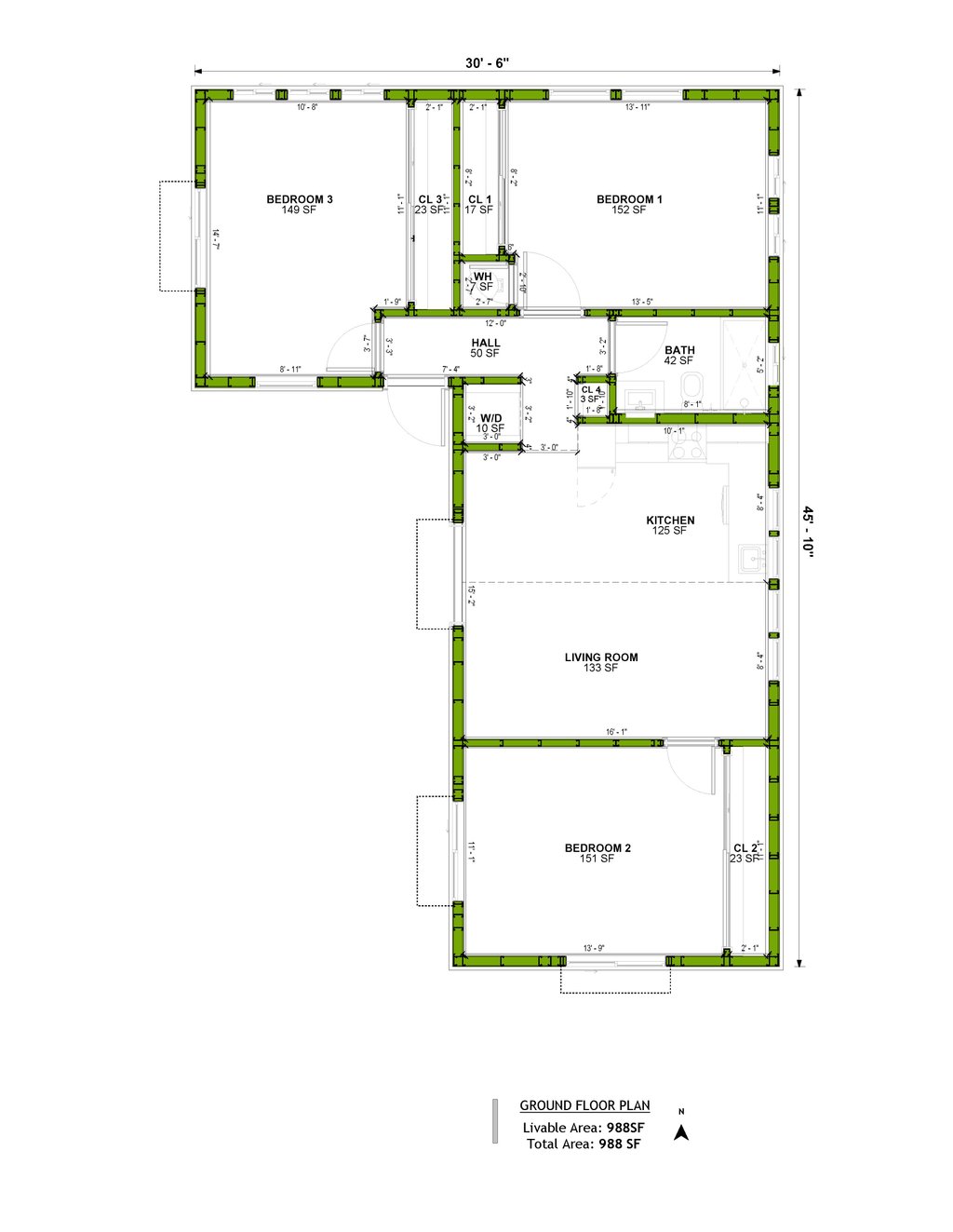 • Floor Plan(s): Detailed plans for each level showing room dimensions, wall partitions, windows and doors, etc.