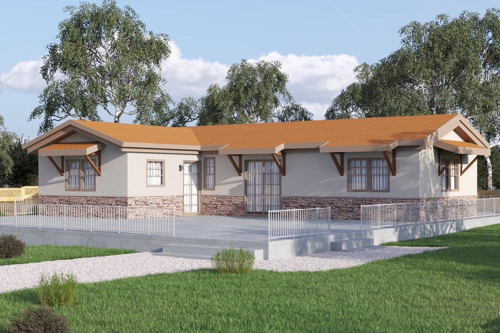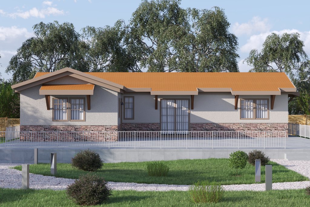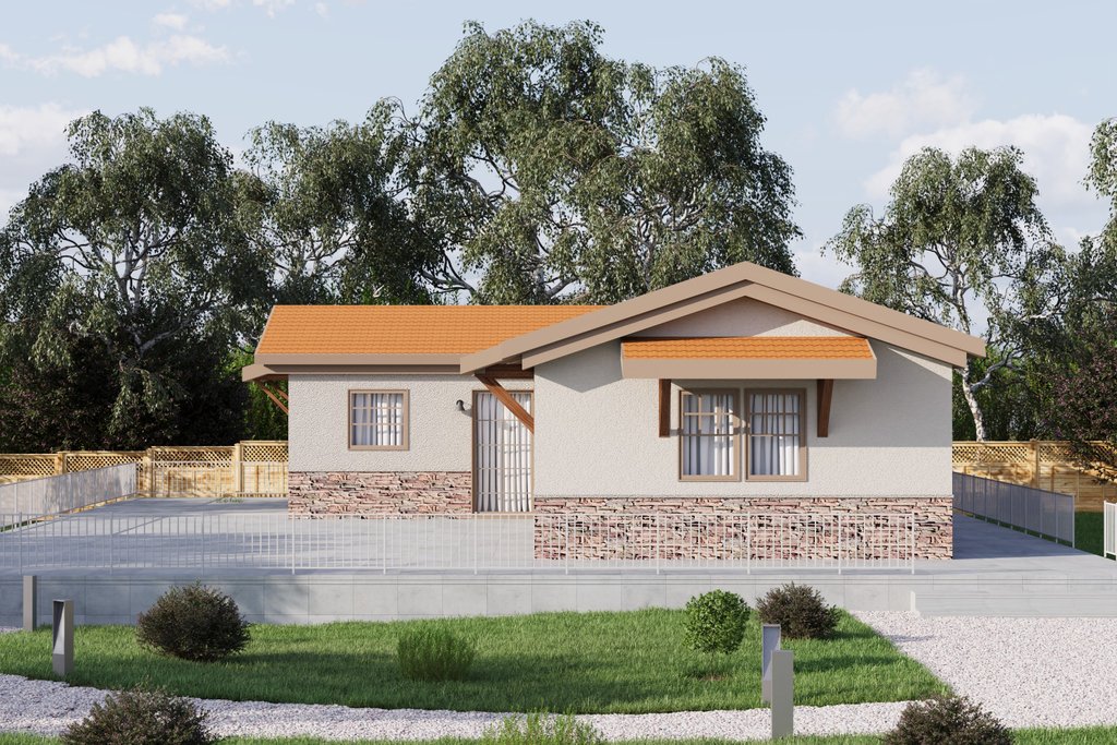 This Tuscan home is 988 sf of living space, which includes 3 bedrooms, 1 bathroom, a living area, and a kitchen. This plan set is engineered for steel with 2"x4" interiors/exteriors, with 2"x6" exterior steel framing available as an add-on option. While the plan shows Light Gauge Steel framing, you can also reference it to fully build in wood. Each set comes with a Comprehensive Generic-Materials Shopping List, a Lighting-Plumbing-HVAC plan, and a Building Instructions Guide. INCLUDES DETAILED TRUSS/ROOF PLAN